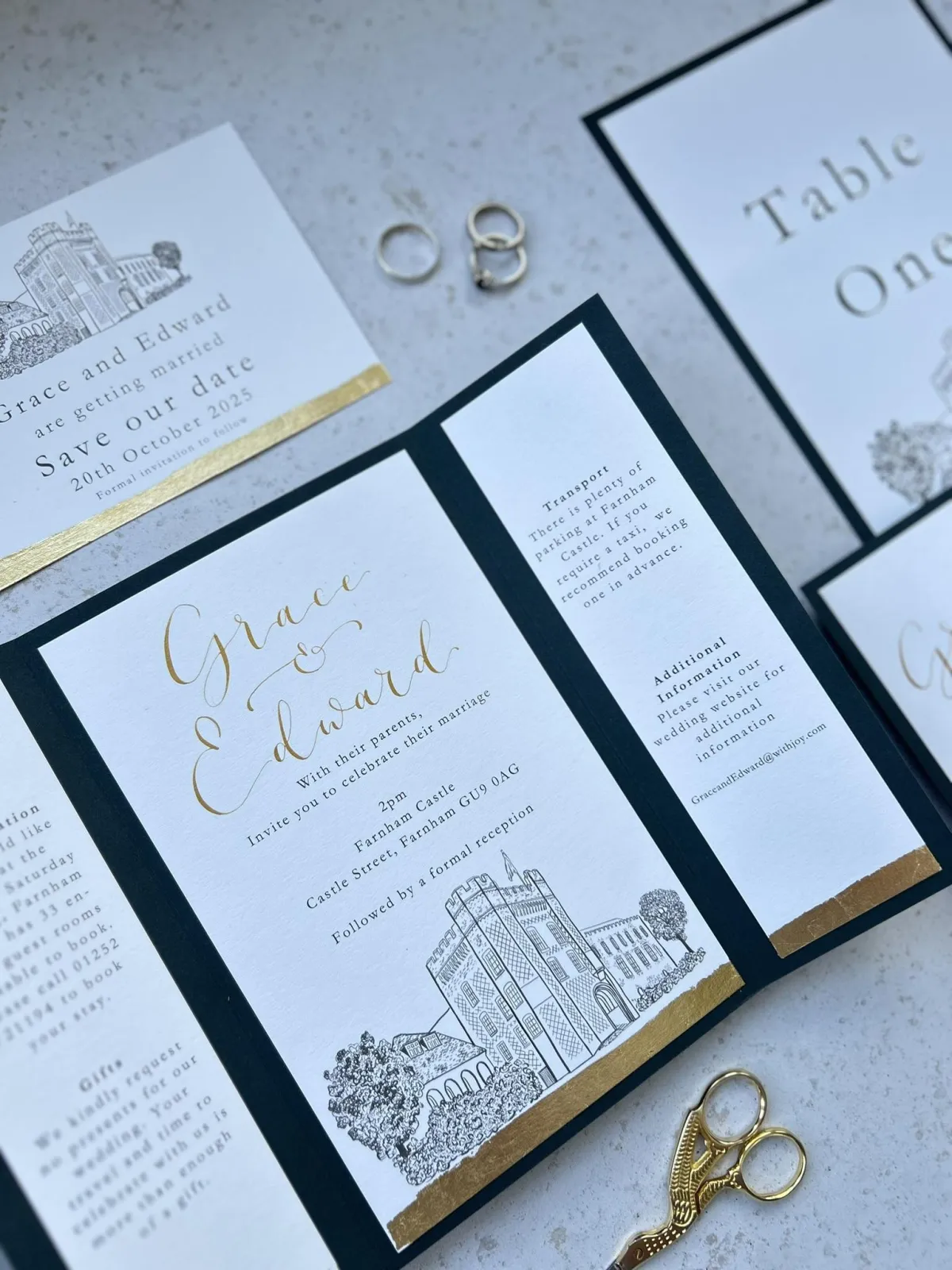 Alison Jane offers a semi custom and fully custom service for your wedding stationery. House collection suites are a pre-designed collection of ranges that Alison Jane can customise for your wedding day. All the beauty of a custom suite, without a custom fee.