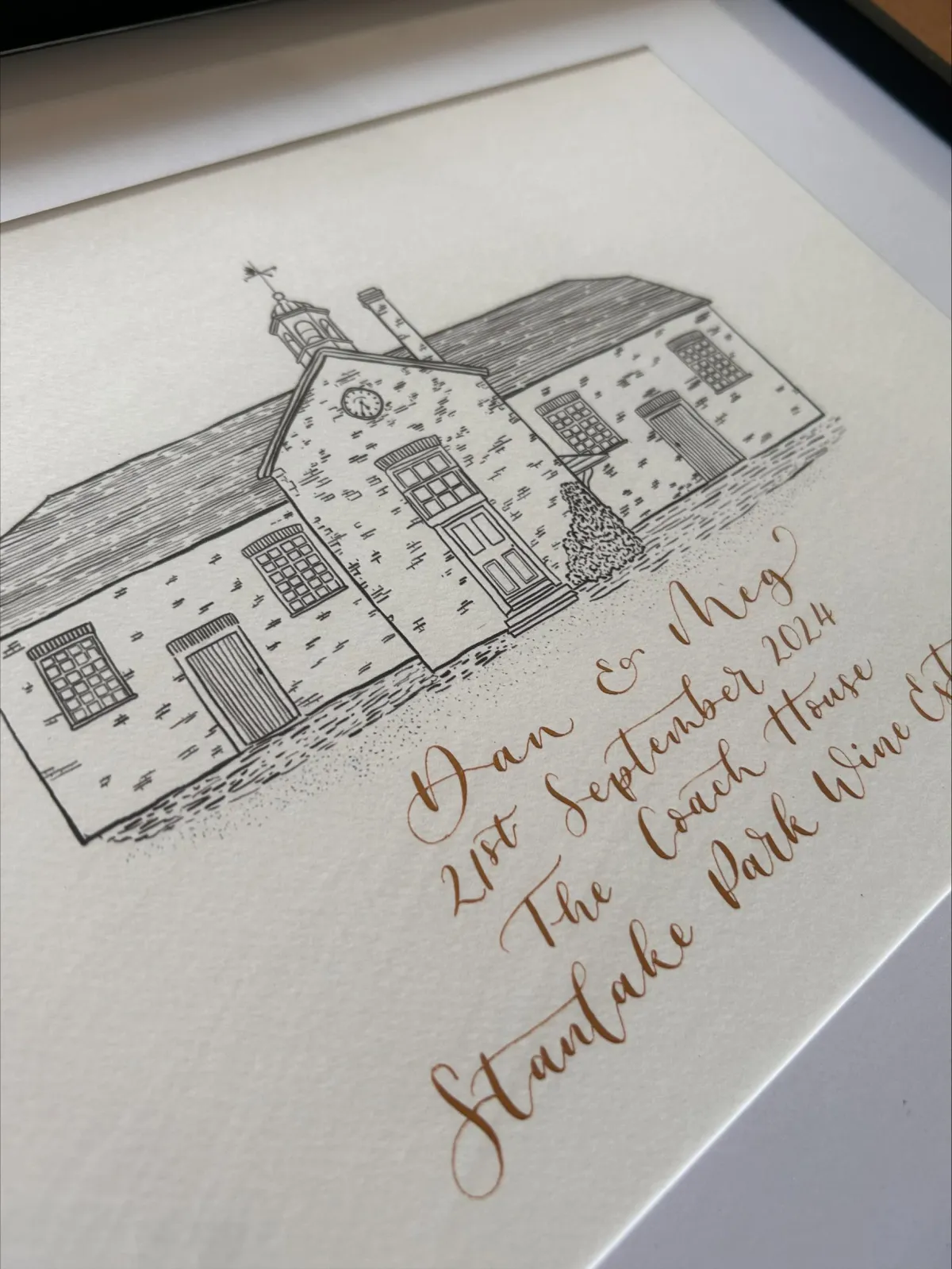 Surprise your loved ones with a unique illustration. Alison Jane specialises in line drawings of venues and pets.