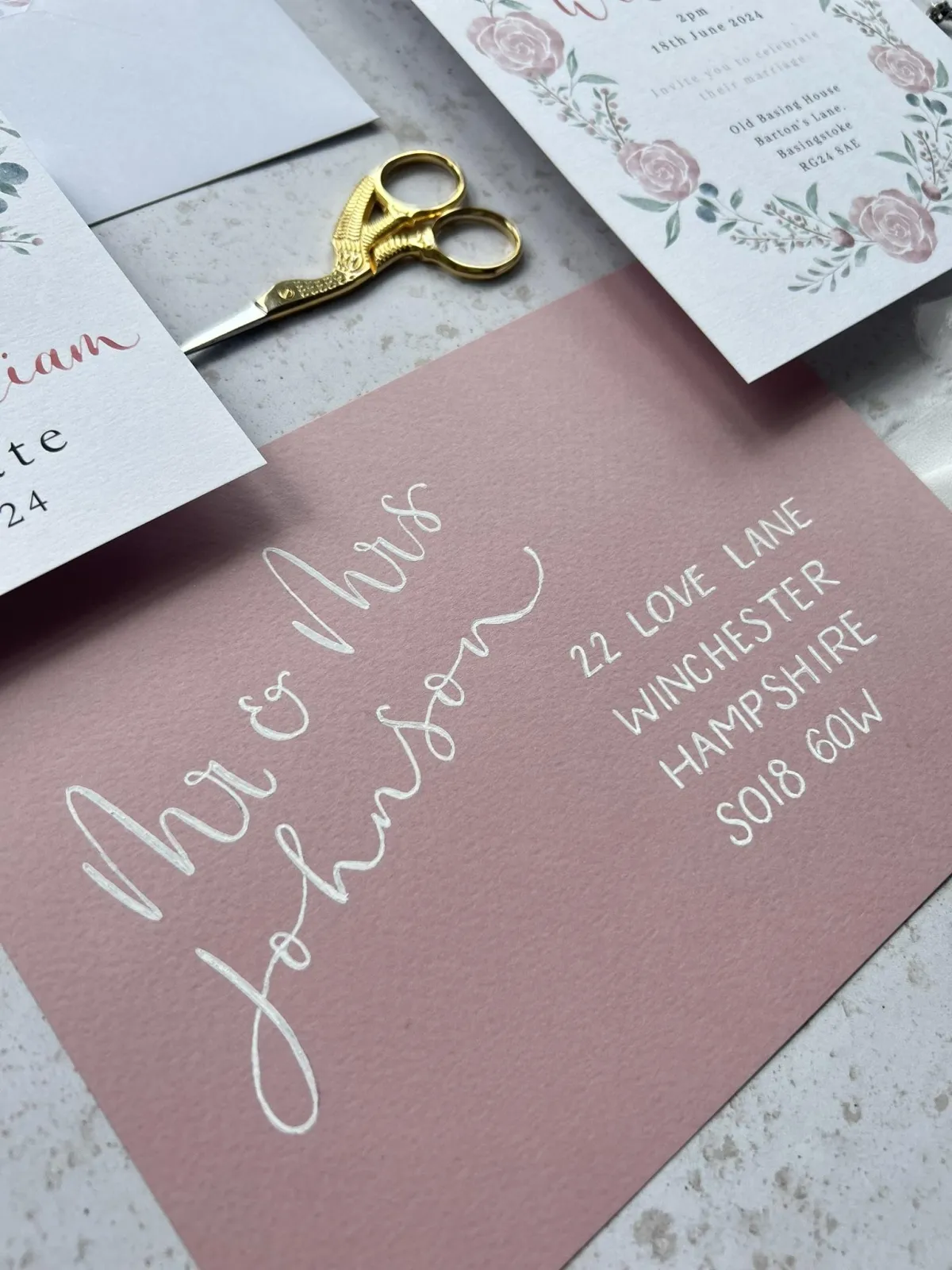 Each item of stationery is printed on high quality 300 gsm card and is finished with optional hand-lettered calligraphy.