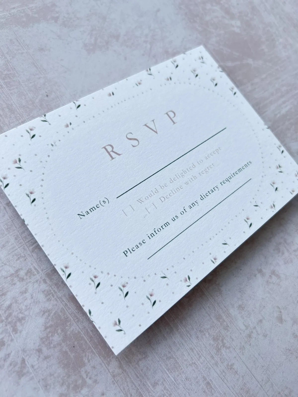 The Classical Garden Collection features a classic illustration (available in other colours) of a collection of wildflowers. These whimsical illustrations are reminiscent of traditional botanical drawings, and give a truly romantic feel to the invitation suite.